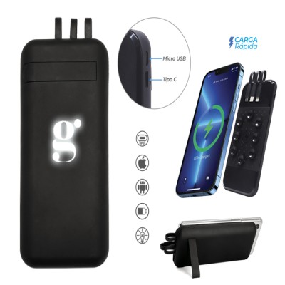 BATERÍA PORTÁTIL CON VENTOSAS 3 EN 1 DE CARGA RÁPIDA CON LUZ CAP. 10000 mAh BINGO A3003 Mod. 02-A3003