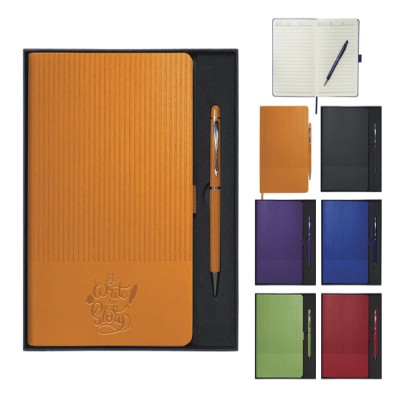 Medidas: Libreta: 14.7 x 21 cm / Bolígrafo: 14 x 1 cm / Caja: 19.6 x 22 cm